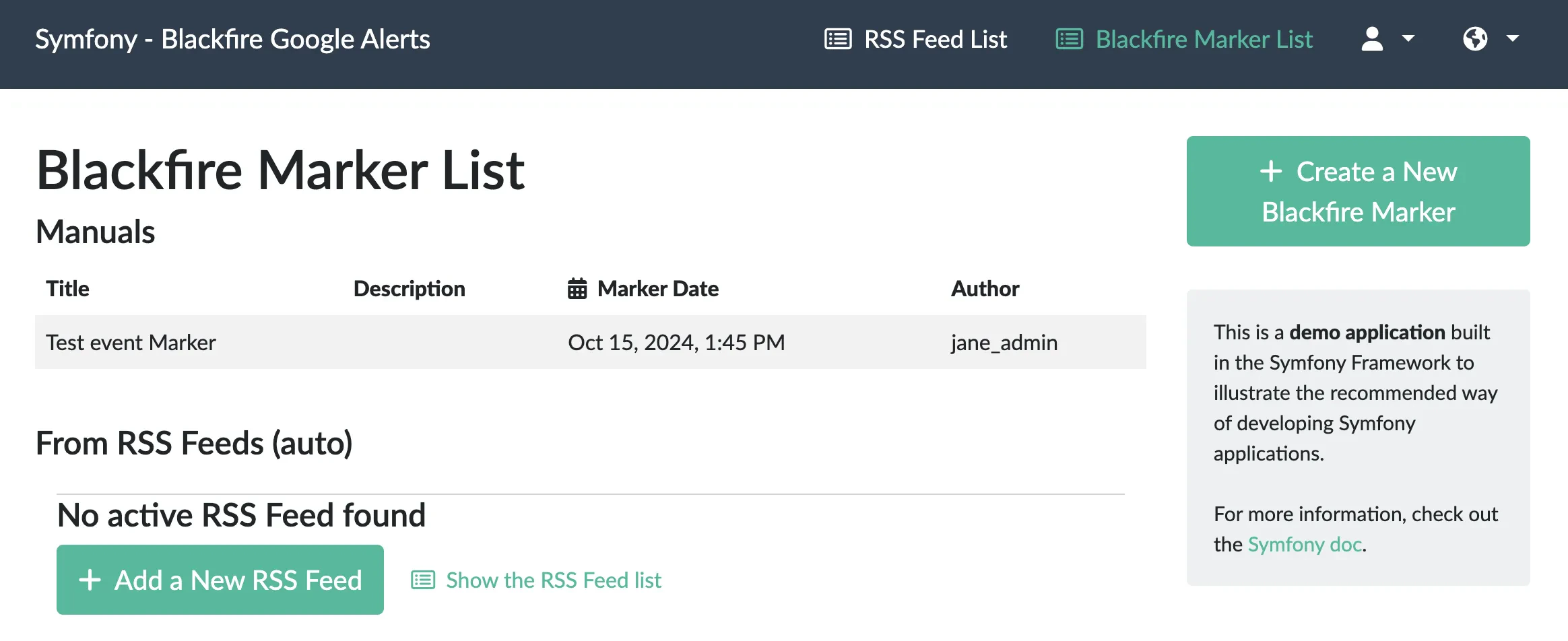 In this new branch, you will find all the necessary source code to get a Symfony admin interface allowing you to manage your RSS Feeds and your Blackfire markers.