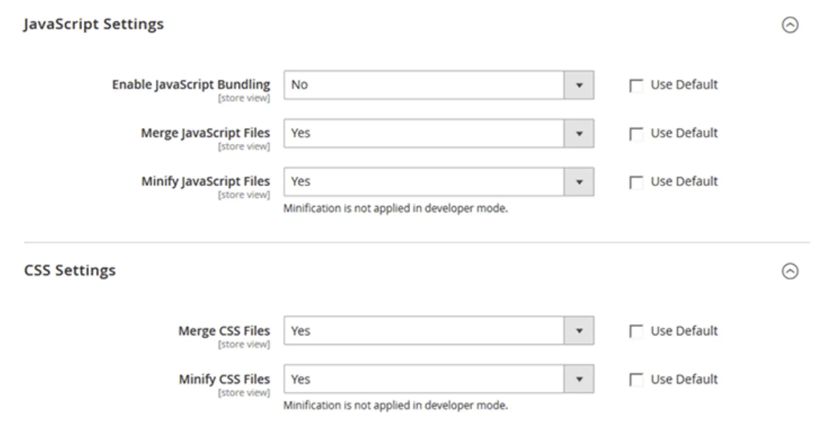 Magento provides a built-in feature to minify CSS and JavaScript. The optimization of CSS and JS enables faster page loading by reducing the number of requests sent to the server by more than 25 times. To enable the built-in feature: Turn the store to production mode (Minification works only in production mode)- Go to - Stores > Configuration > Advanced > Developer and enable modification.
